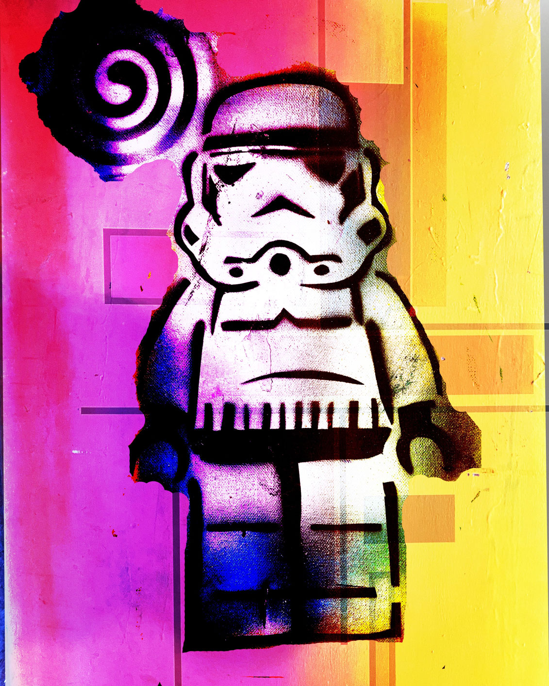 Immerse yourself in the bold fusion of street art and pop culture with Storm Graffiti. This eye-catching piece reimagines the iconic stormtrooper figure through the lens of graffiti and urban design. The stencil-inspired artwork bursts with energy, featuring vivid neon tones—pinks, oranges, yellows, and purples—against a textured gradient background, giving the piece a vibrant, edgy appeal.
